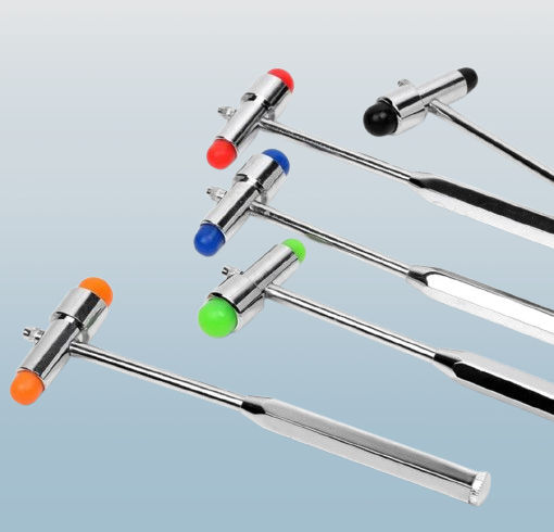 A professional T-shaped reflex hammer with a precision-weighted head for accurate and consistent tendon reflex testing. Available in multiple vibrant colors.