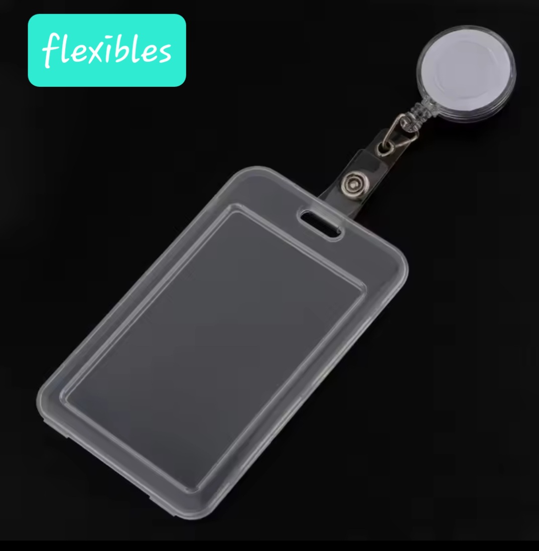 - High-Quality Retraction: The badge reel features a strong spring mechanism and a smooth cord, allowing for quick, quiet, and reliable extension (indicated by the ‘flexibles’ graphic).